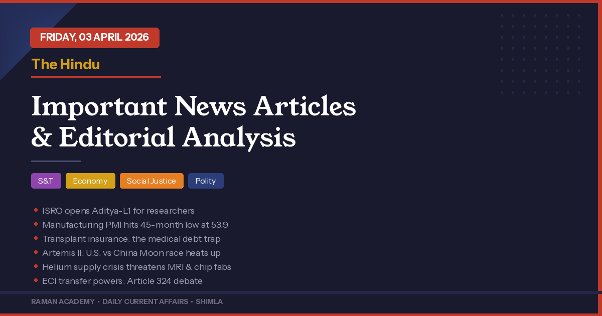 Daily current affairs analysis covering Science & Technology, Indian Economy, Social Justice, and Indian Polity
