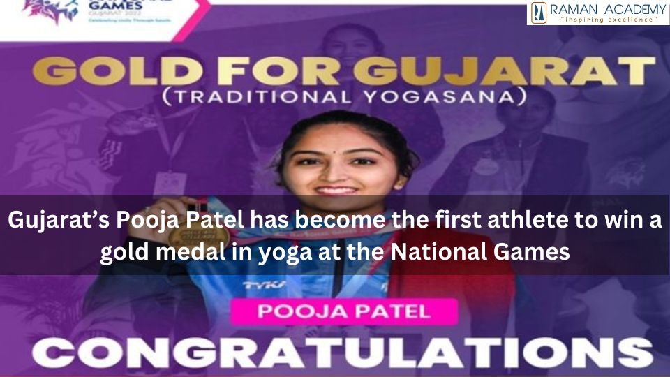 • Gujarat’s Pooja Patel has created history at the National Games 2022 as she became the first athlete to win a gold medal in Yoga at the National Games. Yogasana is being organized for the first time at the National Games.