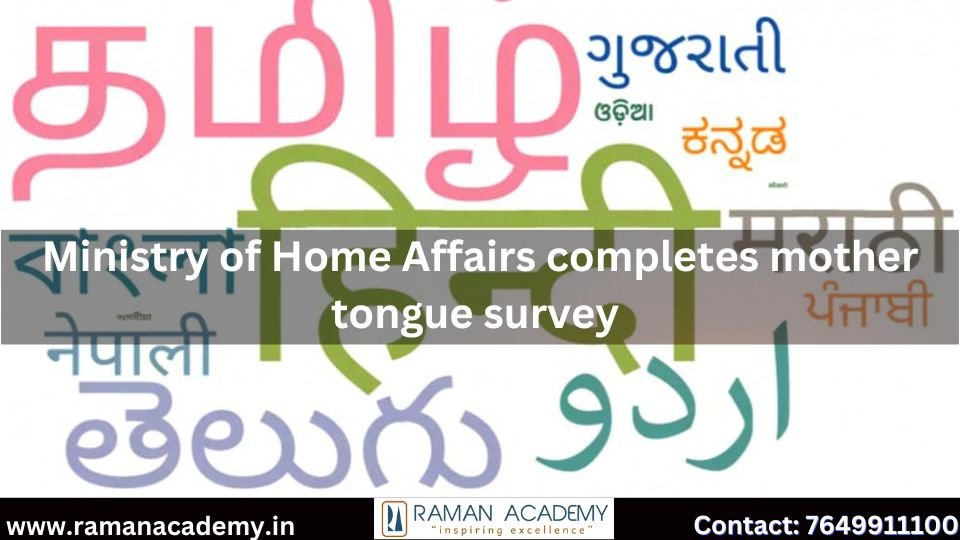 - The Ministry of Home Affairs (MHA) has successfully completed a mother tongue survey with field videography of 576 languages and dialects across the country.