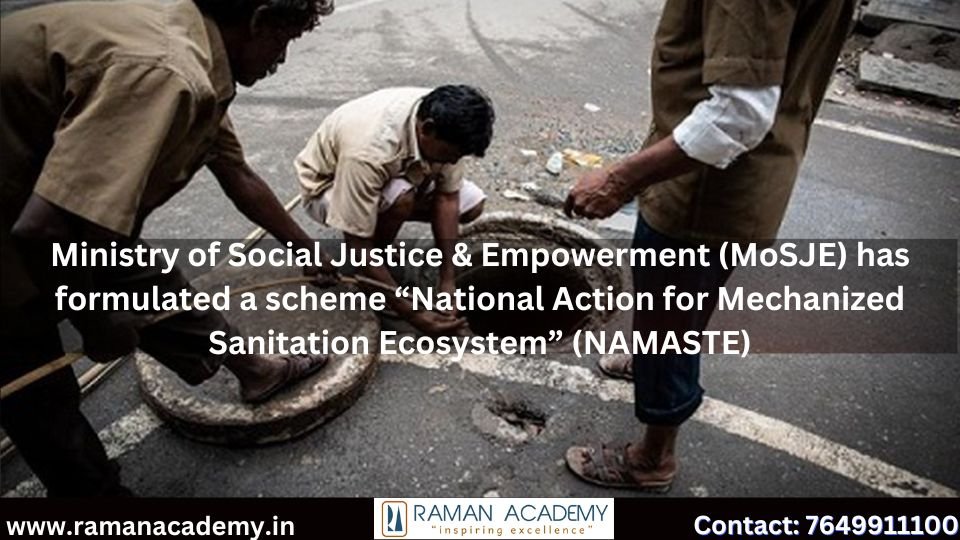 Ministry of Social Justice & Empowerment (MoSJE) has formulated a scheme “National Action for Mechanized Sanitation Ecosystem” (NAMASTE)