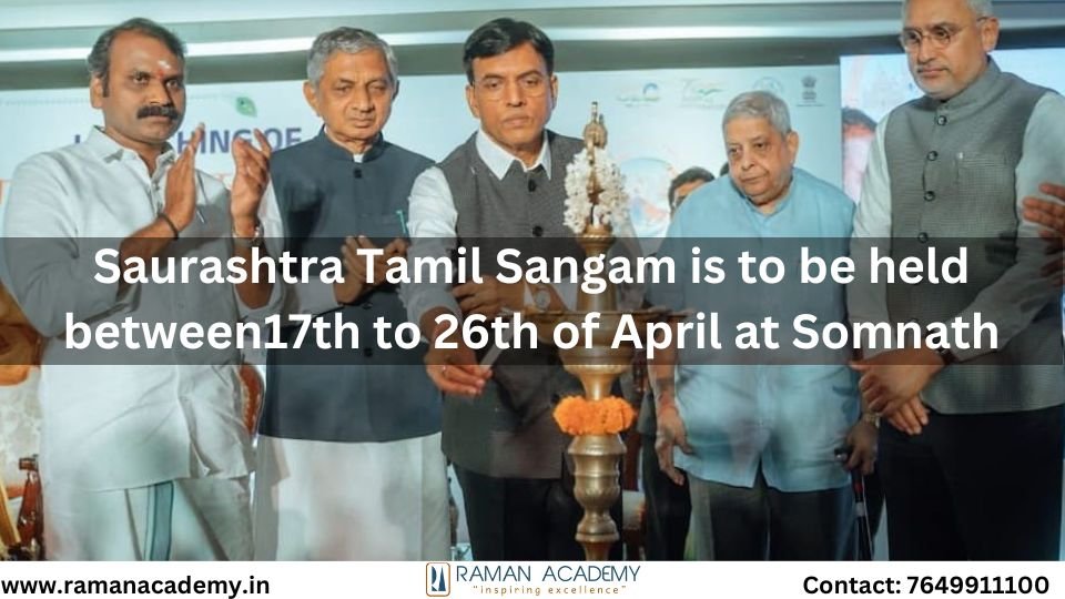 - The Saurashtra Tamil Sangam will be held from the 17th to 26th of April at Somnath, Dwarka, and other places in Gujarat to connect Tamil Nadu and Saurashtra, an announcement was made by Union Health Minister Mansukh Mandaviya at a function in Chennai.