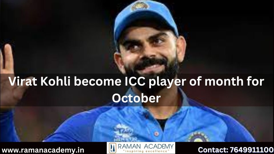 - Star batter Virat Kohli was on Monday named the ICC Men’s Player of the Month for October following a series of stellar performances during India’s charge to the T20 World Cup semifinals in Australia.