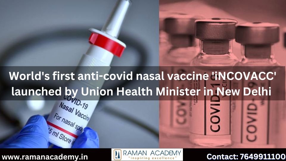 - Union Health Minister Mansukh Mandaviya launched the world’s first anti-covid nasal vaccine ‘iNCOVACC’ on 26 January 2023 in New Delhi.