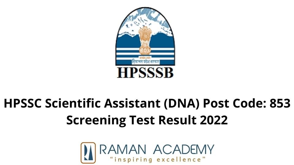 Himachal Pradesh State Selection Commission today declared the result of Written Objective Type Screening Test for the recruitment of 02 posts { Gen(UR)-02} of Scientific Assistant (DNA) (on contract basis) Post Code: 853 held on 14.08.2021 as per the award list and ratio approved (1:3/1:4) by the Hon’ble Commission. The requisition to fill up this post was received from the Director Forensics Services, HP Shimla and advertised vide advertisement No. 36-3/2020 dated